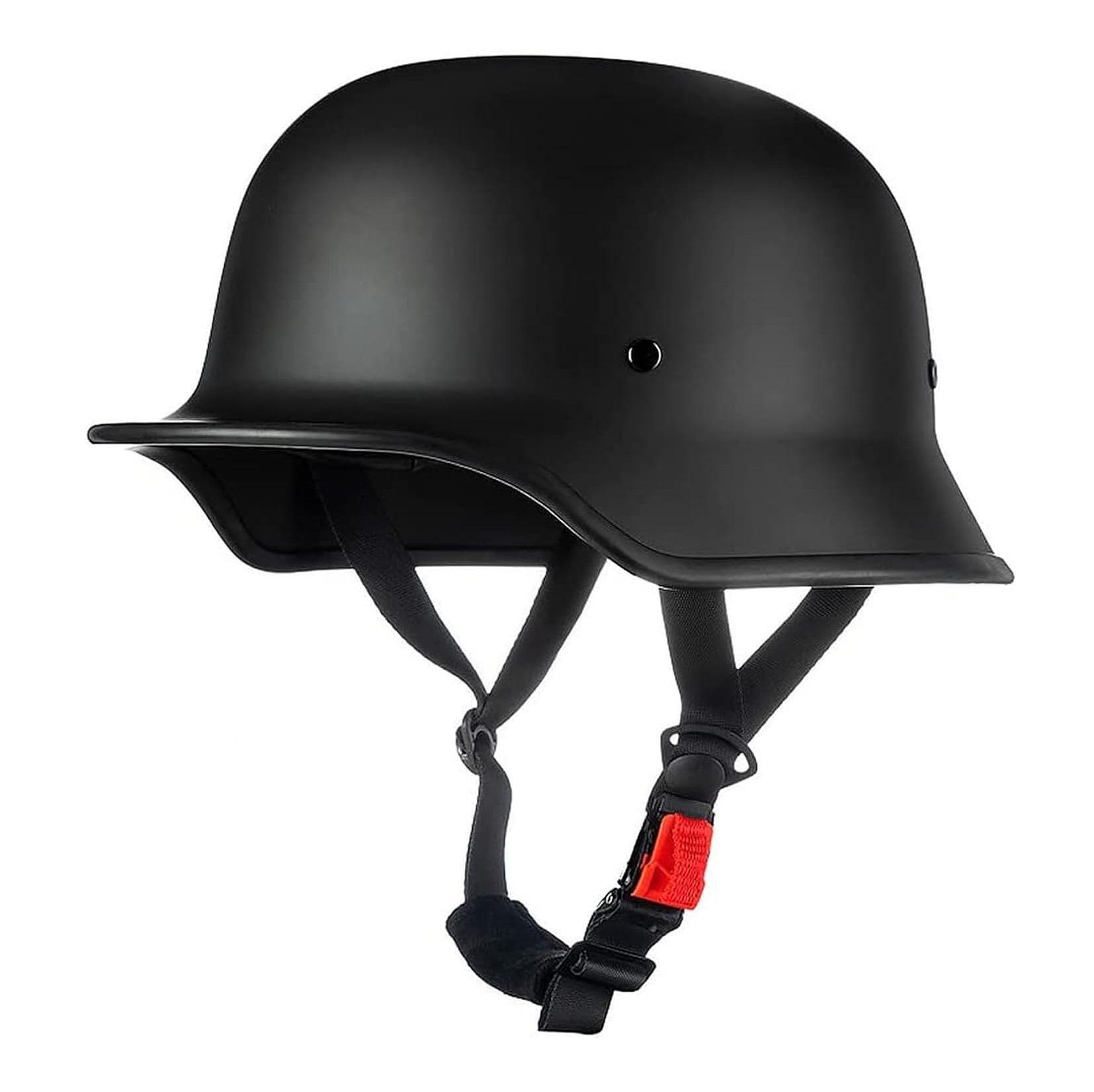 ECE R22-05/DOT Одобрена полукаска: Каската Chopper отговаря на европейските стандарти за безопасност и е одобрена за пътища в Обединеното кралство, Америка и Европа.  Висококачествен материал: Висококачествен ABS материал, устойчив на износване, удароустойчив, нечуплив, предпазва главата и намалява щетите, има добра устойчивост на удар и може ефективно да абсорбира външни сили. Комфорт на каската: Регулируемата каишка за брадичката може да се регулира. Свалящата се и миеща се вътрешна подплата поддържа каската чиста. Каската има вграден сенник, слънцезащита през деня и силна светлина през нощта, което прави карането по-безопасно. Широко приложение: Мотоциклети, мотопеди, велосипеди, круизъри, чопъри, скутери, скейтбордове и каски със сенник могат да се използват в различни среди за ефективно смекчаване на външните сили.  Материал: ABS + EPS буферен слой с висока плътност Подплата: кадифе + мрежа + висококачествен дунапрен, с възможност за отделяне Обектив: Висококачествена PC смола, устойчива на износване, бавна, нечуплива, против отблясъци Тегло: 750±50 гр. Размер: М 55-56 см.